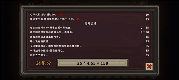 购买幸运点天赋后,每转换1点幸运点仅需75积分。我们的目标是单局刷出2点幸运点,对应150积分,这差不多需要4.3倍(即330%)的诅咒增幅。要达成这个倍数,选择地狱9难度即可(哪个难度高就选哪个)。另外需要注意:只有通过第一个岔道口,才会结算积分,否则积分为0。
