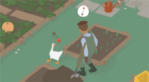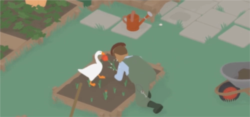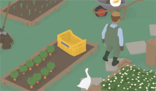 1、首先,在《鹅作剧》里,玩家能在园丁的花园中看到一朵花,把这朵花从土里拔出来后放在地上;