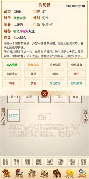 3、习得厉害的武功秘籍,还能加入武林门派,争取成为门派的帮主。
