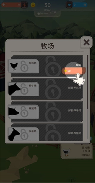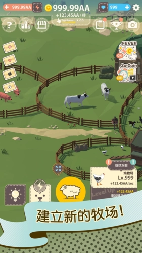 1、除了牧羊场,其他所有牧场每秒都会自动产生金钱。只要增加牧场的数量,就能轻松积累财富。