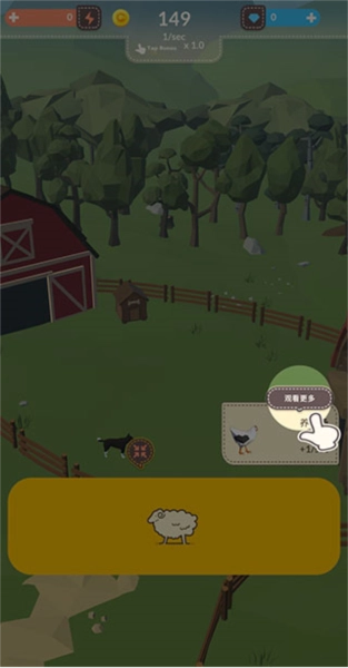 5、只需点击按钮召唤羊只,让羊只从小屋移动到其他地方,就能获得硬币!