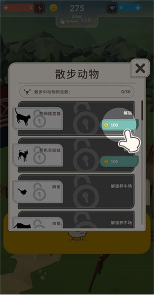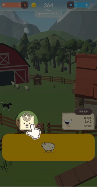 2、牧羊场的情况比较特殊,它没办法自动产生硬币收益,只能靠玩家点击放羊图标来获取,每点击一次,就能得到一份收益。