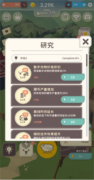 消耗钻石升级各项研究,可为农场带来显著的收益加成。