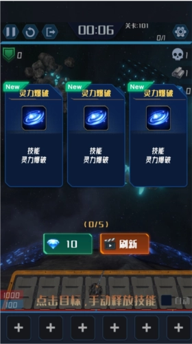 由于灵能资源有限,前期应该优先提升剑魔方和灵能燃烧这两个技能。关卡中建议用剑魔方来清理数量较多的敌人,而灵能燃烧则用来增强激光的威力,以此应对质量较高的敌人。