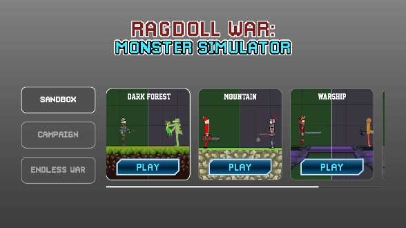 布偶战争沙盒是一款十分有趣的沙盒冒险战斗游戏,它玩法简单易上手,以经典的布娃娃沙盒玩法为核心。玩家可以在游戏里使用各类武器装备展开战斗,而且游戏没有固定的玩法限制。你能在其中体验到史诗级的火柴人战斗乐趣,享受极致的物理破坏效果,感受这款游戏的独特魅力。喜欢布偶战争沙盒的小伙伴们,赶紧来体验吧!