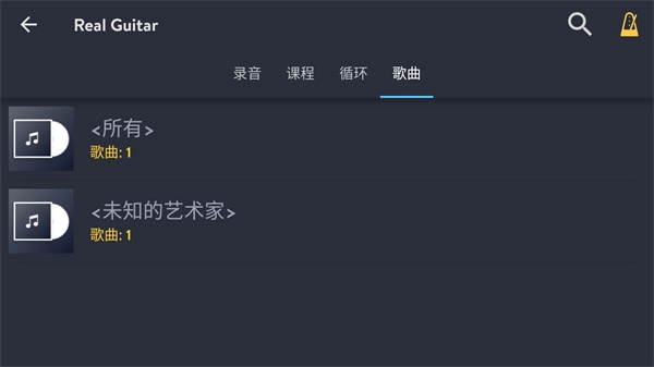 1、RealGuitar支持读取本地音乐,大家只需将自己想要的歌曲保存到本地,然后点击上方的开始按键即可;