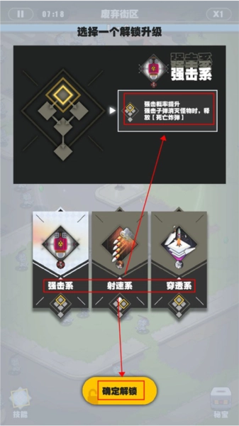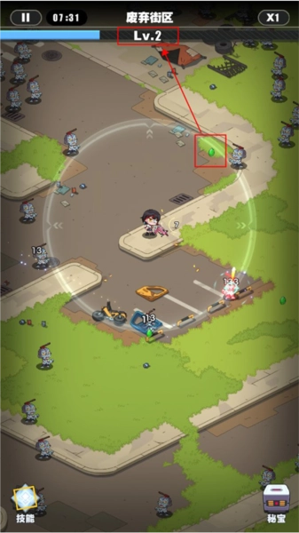 4、拾取经验球提升角色等级后,玩家可以学习技能,点击即可查看技能效果,小编建议优先选择子弹类技能。