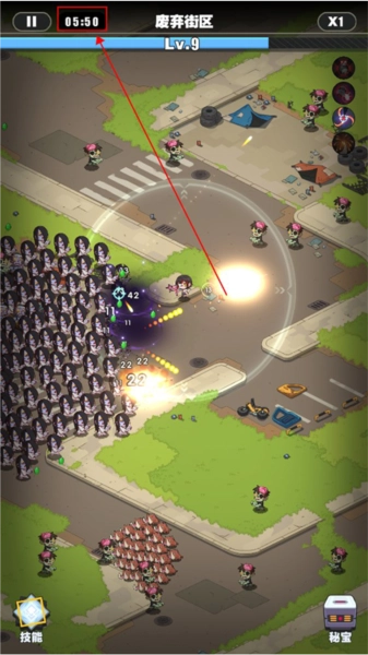 7、界面左上角显示的是冒险时间,玩家要在该时间范围内成功抵御僵尸的攻击,并且把最后出现的BOSS击败,就能赢得胜利。