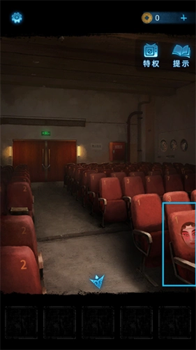 1、点击右侧带有脸谱图案的座位,获取脸谱的排列信息后,依据该信息打开右后方的消防格,即可获得【灭火器】。