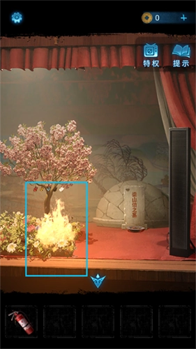 2、使用灭火器扑灭戏台上的火焰,接着点击起火的位置以拉近镜头,再点击白色蝴蝶,获取【玉蝴蝶】。