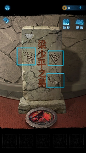 3、把玉蝴蝶放置在墓碑的缺口位置,墓碑随即产生变化,同时获取到新的图案线索
