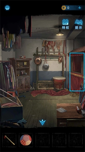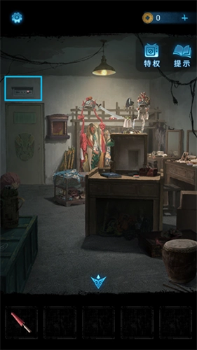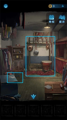 12、把获取的封条粘贴到左侧的箱子上,接着点击里屋正前方的大红布,掀开红布后会看到乐器架。依据纸张上红色图案所示的乐器顺序,依次敲击对应的乐器,打开箱子就能获得【布娃娃】。