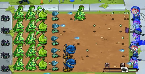 3、10多个不同的僵尸同时在线对战,合理安排阵容,击退它们。