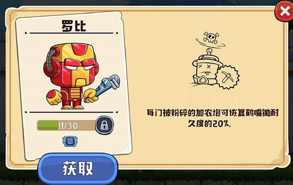 技能:每粉碎一门加农炮,鹤嘴锄的耐久度就能恢复20%