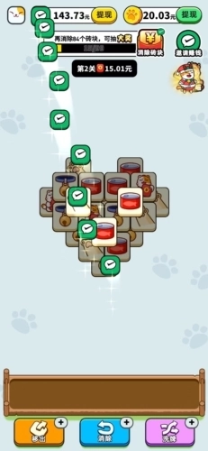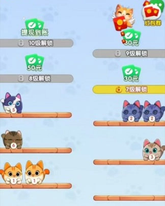 2、每次解锁新猫咪都能获得红包奖励,合成的猫咪等级越高,奖励就越丰厚!