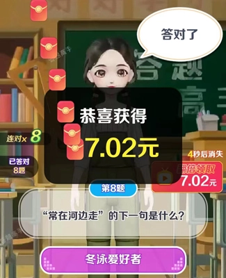 2、答对以后,还可以获得红包奖励。