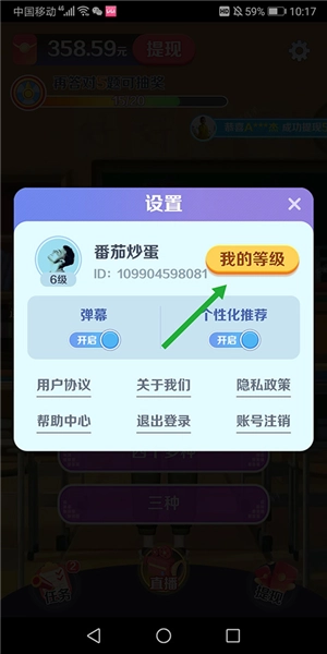用户可以进入设置页面,点击【我的等级】来查看自己的等级。