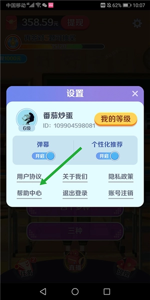2、有弹出的设置对话框中点击【帮助中心】