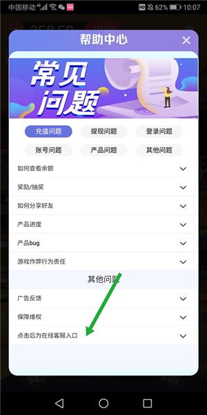 3、打开帮助中心页面后,上滑页面到最底部,然后点击【在线客服入口】