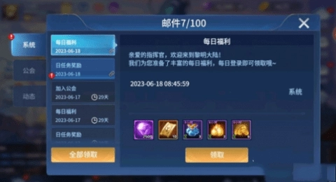 4、点击兑换后,在邮件中即可领取奖励。