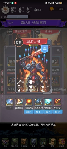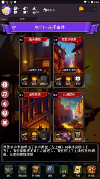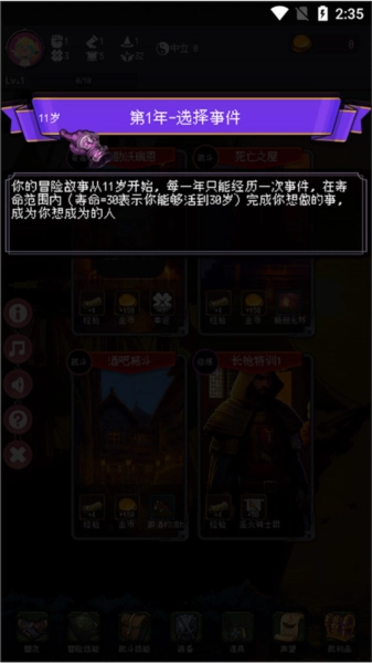 2、冒险属性与金币会影响你人生中的各类事件,点击属性图标即可查看属性效果说明;