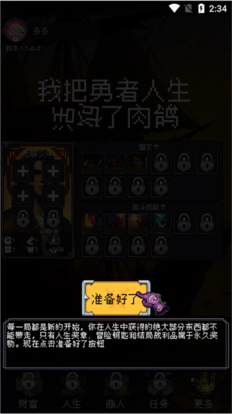 1、打开《我把勇者人生活成了肉鸽》,点击“准备好了”按钮开始游戏;