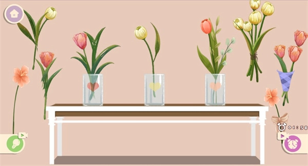 3、现在我们要成为插花达人,得把花放进指定的瓶子里。