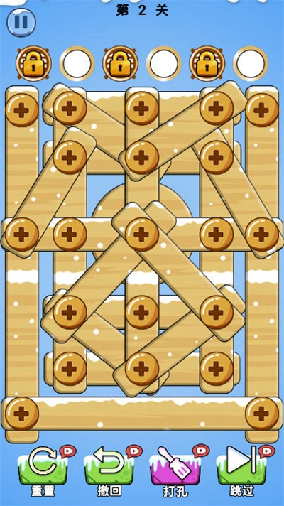 唉,瞧见没,第二个难度一下就上来了,看着好像也没多难,你们应该跟我一样吧?第一个直接上手就开始拆螺丝,先拆上面两个,结果下面那个螺丝被挡住了,那换个位置放这儿不就行了?再把中间的拆掉,接着把右边的移过去,轻轻松松又拆掉一个,后面我还以为只要这样一个个拆下去,这关很快就能轻松通过了!