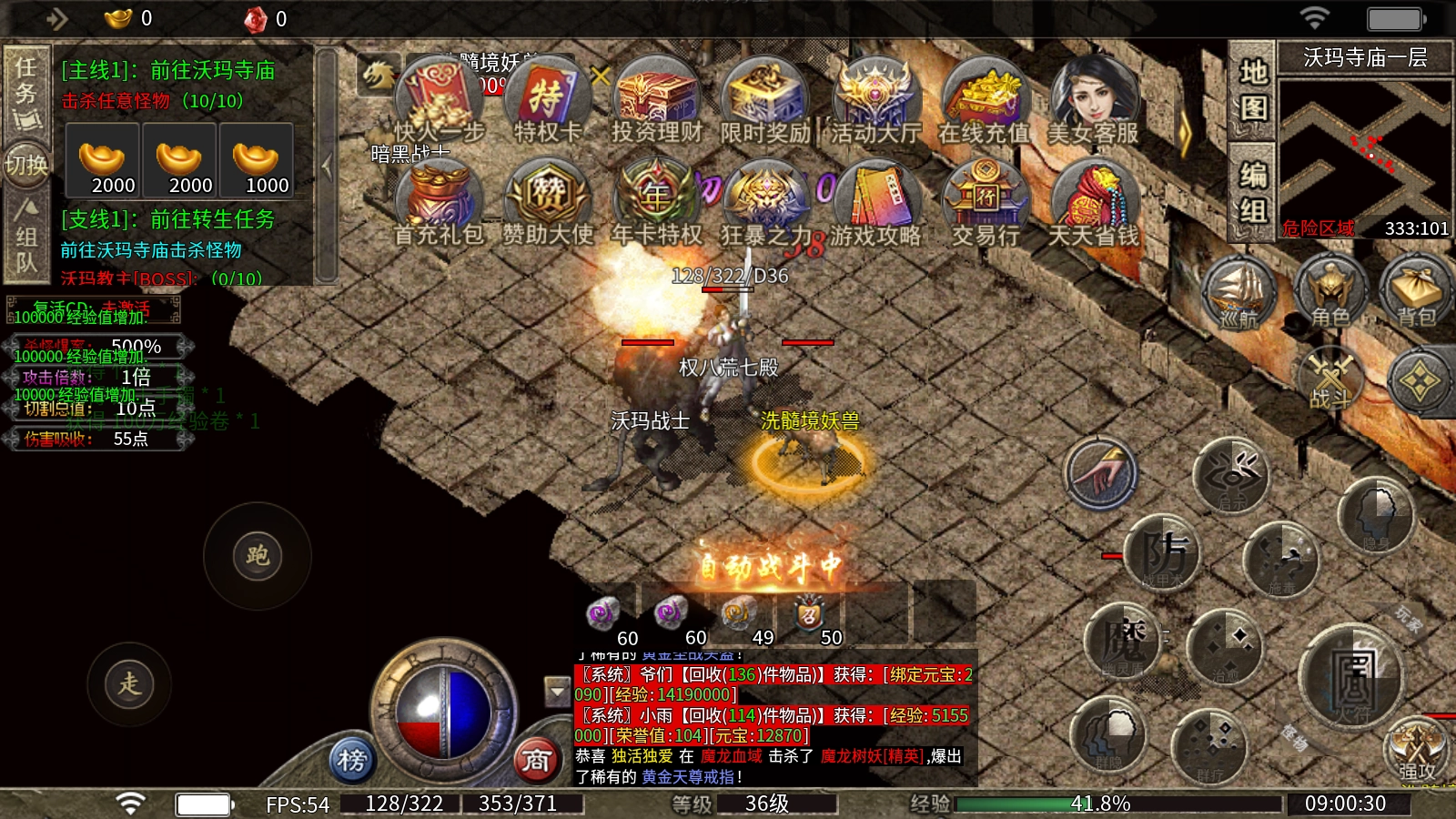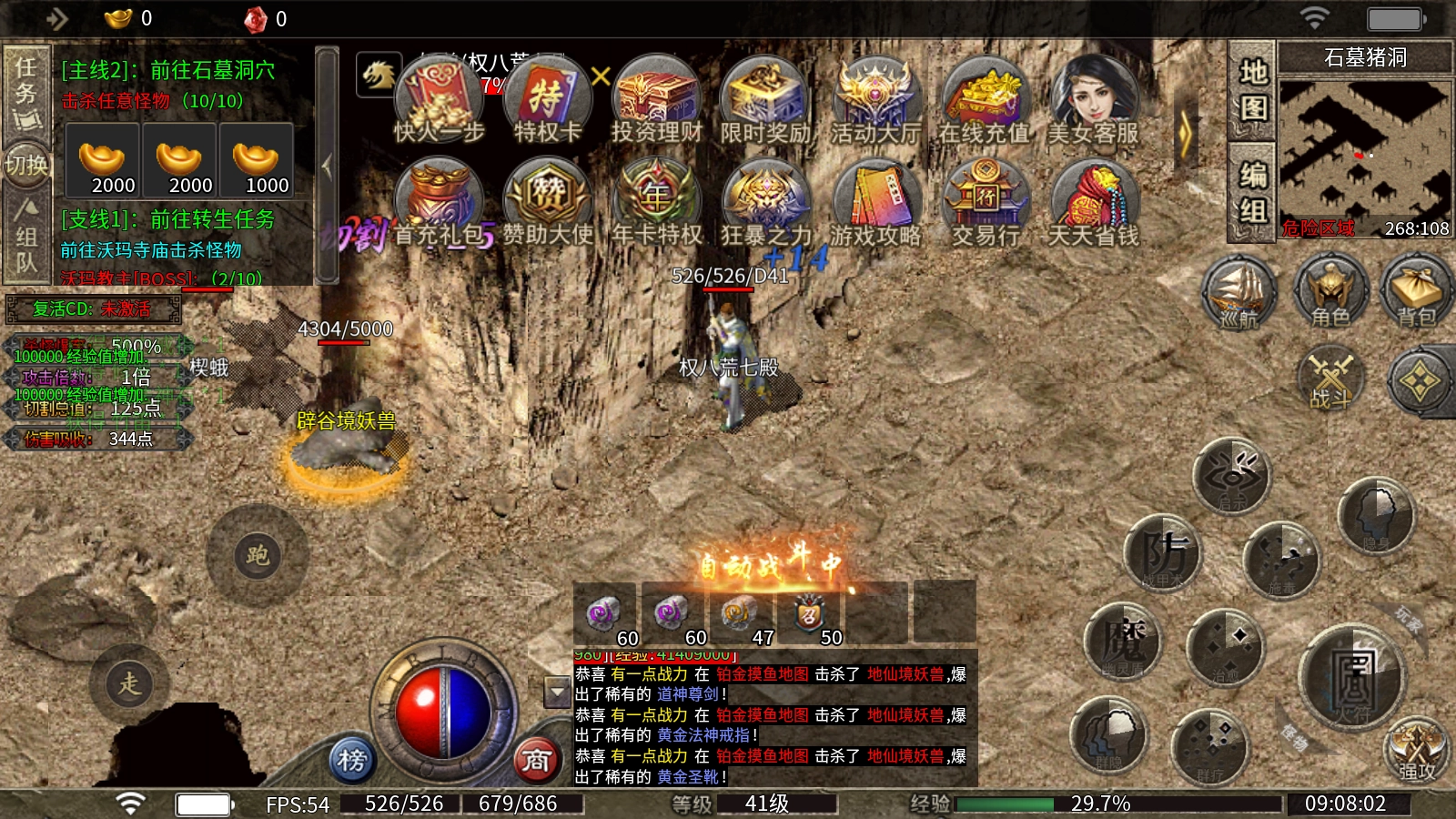 4、神威狱:每日22:30活动开启,击杀怪物后有概率掉落各类装备。