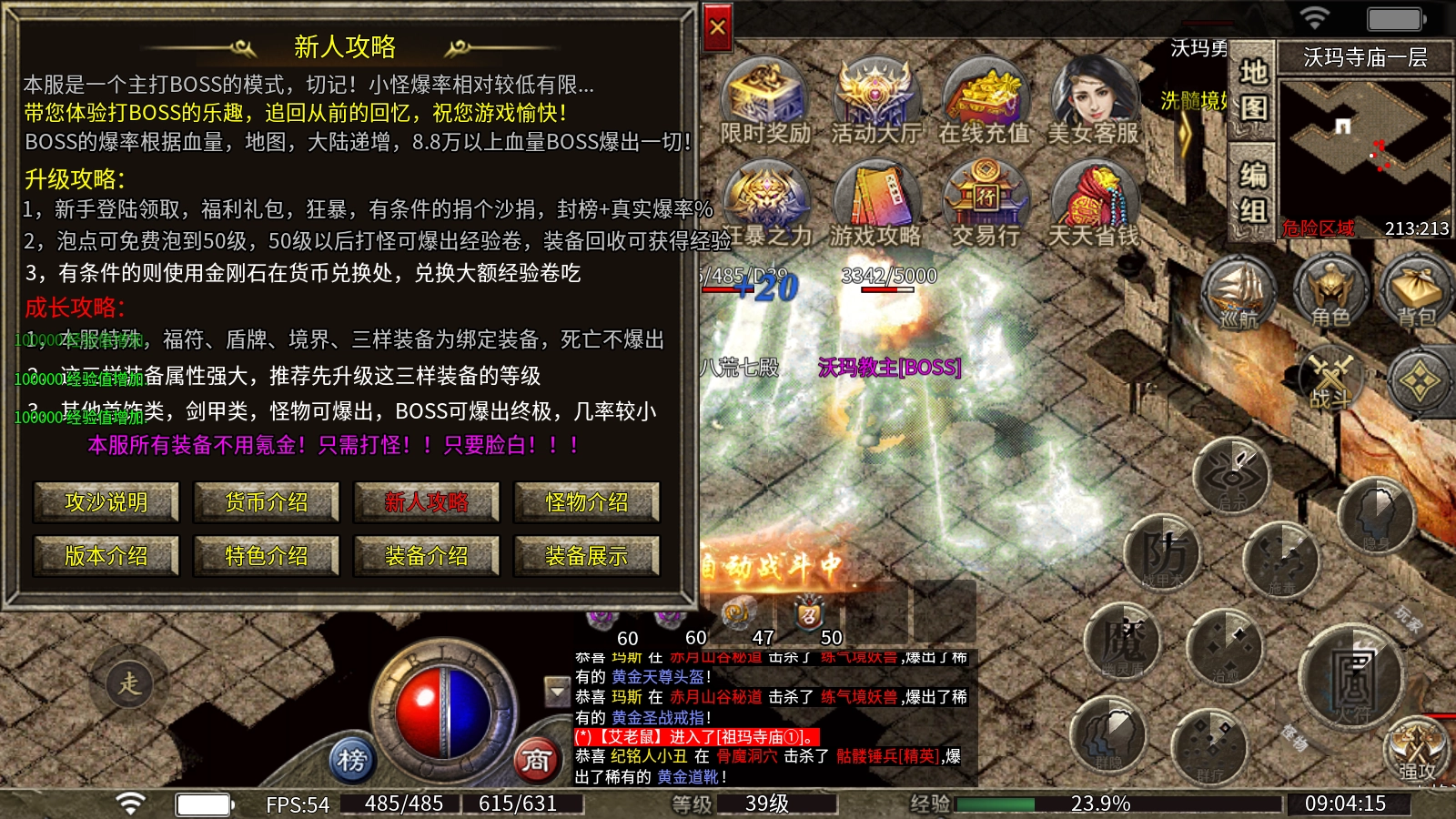 1、新手登录即可领取福利礼包与狂暴状态,有条件的玩家可以参与沙捐,封榜后还能提升真实爆率。