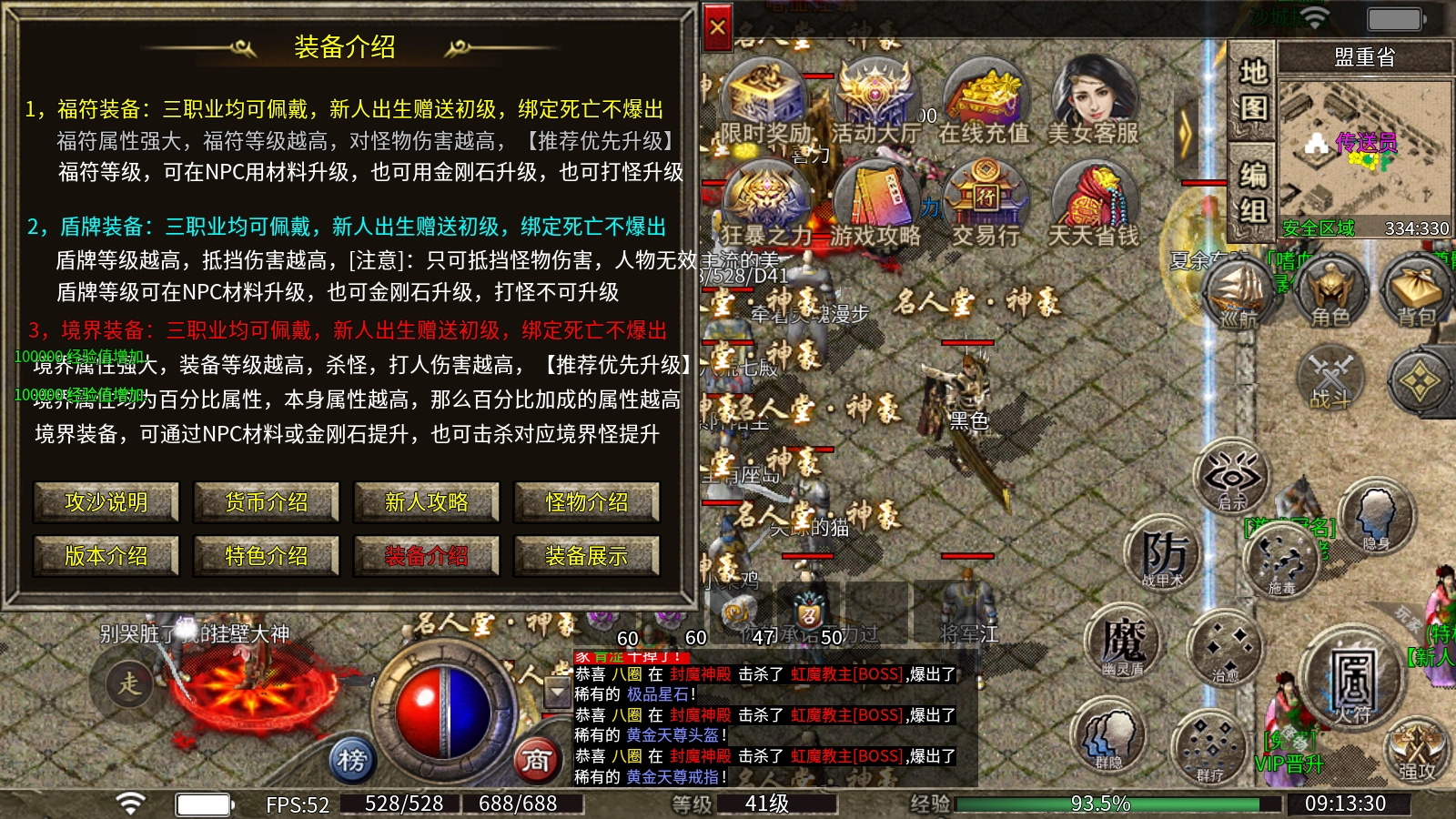 4、本服务器有特殊设定,福符、盾牌、境界这三样装备均为绑定装备,角色死亡时不会爆出。
