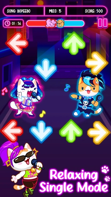 二重唱玩法:在这场精彩的冒险里,你将操控两只萌趣的猫咪主角,带领它们在多样的音乐风格中演绎动人的二重唱。这便是你会为DuetCats-MusicDashDance着迷的缘由。