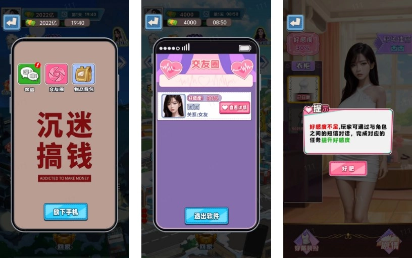 交友圈:这是一种NPC攻略玩法,玩家需要通过与女友、前女友等特殊NPC进行对话,才能解锁该功能。