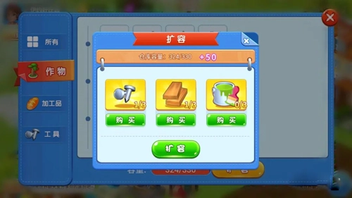 2、用仓库扩建材料来扩建仓库,这是小梦建议的做法。不过需要准备一些材料,这些材料既可以用钻石购买,也能通过慢慢完成任务来获取。