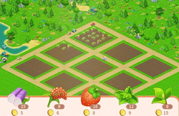 庄园里的农田数量会随着庄园等级的提升而增加,加工坊和订单需要的农作物只能在农田里种植,每块农田都能种任意一种农作物,而农作物只能用金币购买,等级越高解锁的农作物种类越多,不同种类的农作物价格也不一样,每块农田每次收获的数量是1。农作物有三个生长阶段:萌芽期、成长期和成熟期,只有到了成熟期才能收获,收获后的农作物会存进仓库。要是收获的农作物太多导致仓库满了,那就赶紧去仓库处理一下,可以选择出售多余的农作物,也可以给仓库升级哦!