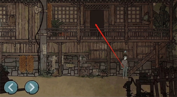 3、向右来到住所,交谈过后走到右边的竹梯旁上楼