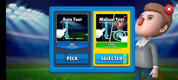 2、内设有两种操作模式供玩家选择:【AutoToot】是自动模式,此模式支持单手操作,玩家仅需控制音符的音高,难度相对较低;【ManualToot】为手动模式,需双手配合操作,一只手负责控制音符音高,另一只手通过点击来模拟吹气动作,玩家可根据自身喜好自由选择。