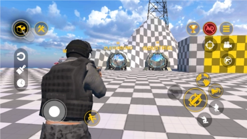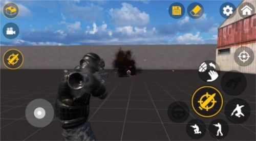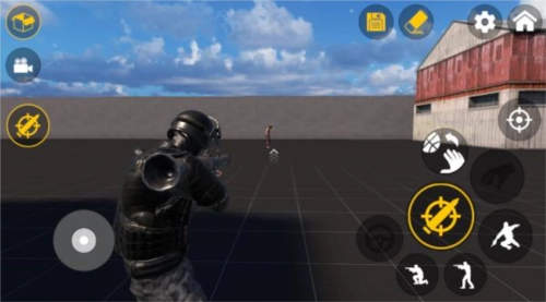 2、可借助虚拟按键操控人物完成移动、跳跃、蹲下、射击等动作。