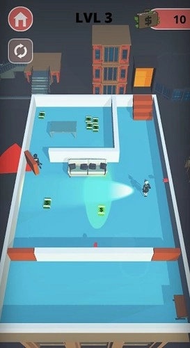 《不可能的抢劫2》是一款轻松易上手的休闲益智游戏,它有着独特有趣的画面设计和诙谐搞笑的玩法。在游戏中,玩家需要操控小偷角色——作为抢劫犯的你,在盗窃完所有物品后,身后会追来大批警察,此时你需要躲避他们的追捕,这个过程非常考验玩家的操作能力。只要避开警方面前的红色区域,你就能成功逃离!喜欢这类游戏的朋友快来挑战吧!