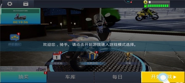 1、进入真实公路摩托锦标赛,点击开始进入模式选择;