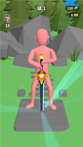 3、拔剑的操作是这样的:我们需要按住屏幕,把插在地上的剑拔出来。至于要用多大的力气,大家可以自行控制。