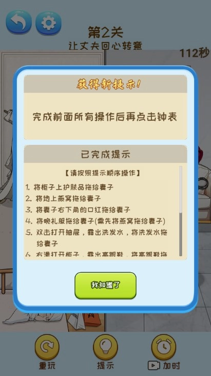 1、将柜子上护肤品拖给妻子
