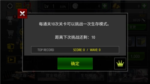 -开启生存模式,在该模式里,你得使用所有可选用的武器进行射击,直至时间结束。