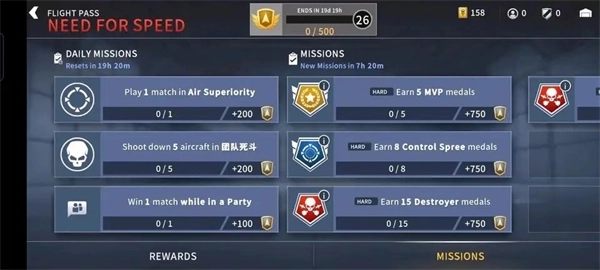 左边展示的是每日任务,右边的任务则是每三天半刷新一次。每日任务仅限当天有效,过期后就无法完成;而其他任务在本次通行证有效期内都能完成,不会消失。标注有“hard”的属于高难度任务,完成这类任务需要花费更长时间,相应地,能获得的通行证积分也会稍高一些。