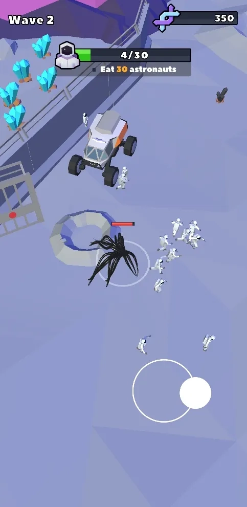 3、玩家能够以滑动手指的方式操控毒液的移动,同时还能进行躲避或冲刺动作,借助毒液的触手攻击宇航员,将他们消灭后完成任务,从而获取基因数据。