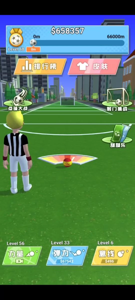 3、在这款游戏里,你会化身为一名足球神射手,去挑战通过掌控踢球力度来让足球飞得尽可能远的任务。