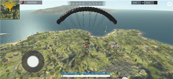 5、进入游戏后,画面会显示玩家乘坐飞机参与大逃杀玩法,此时点击右下角的降落伞按钮即可。