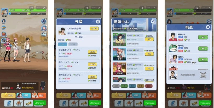 点击招聘按钮,招募并升级美女助力,就能获取金钱(还可以挑选不同的小姐姐来跟随哦)