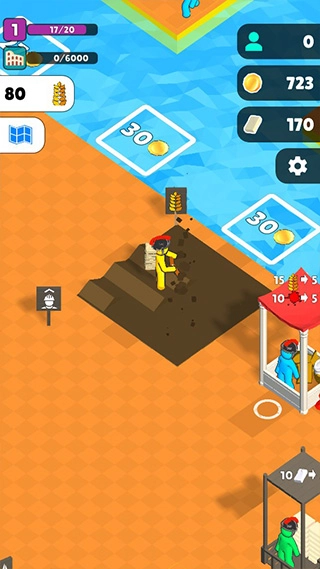 1、打开城市建造师,操控橡皮人开垦荒地。