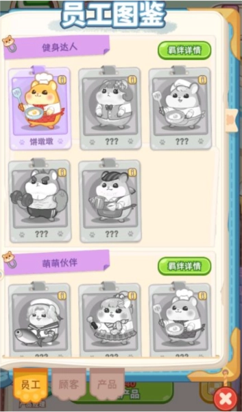 测试期间,店长在图鉴里每解锁一位员工或顾客都能得到钻石,每解锁一款新产品则可获得一点体力,各位店长别忘了多研究新品、积极招募员工哦~